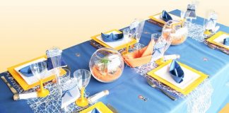 Les pailles, serviettes et gobelets sont choisis dans deux motifs pour ne pas surcharger.